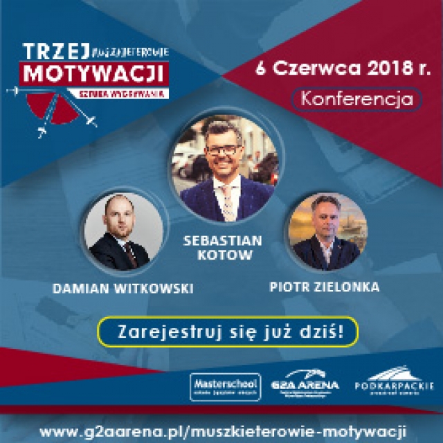 Dlaczego sportowcy tacy jak Krzysztof „Diablo” Włodarczyk osiągają ponadprzeciętne sukcesy? Zastanawiasz się, co sport ma wspólnego z prowadzeniem biznesu? Boisz się podejmować ryzyko i nie wiesz, jak mobilizować i angażować pracowników? Zapraszamy do G2A Arena Centrum Wystawienniczo-Kongresowego Województwa Podkarpackiego na drugą edycję Konferencji „Trzej Muszkieterowie Motywacji: sztuka wygrywania”.