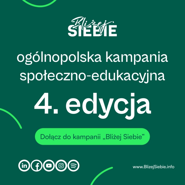 Zapraszamy na kanały kampanii: na stronę Blizejsiebie.info oraz na profile na Facebooku, LinkedIn, Instagramie, YouTube i Spotify.