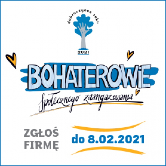 W Polsce jest wiele firm, które samodzielnie lub we współpracy z organizacjami pozarządowymi, realizują wartościowe projekty społeczne, angażując się przy tym całym sercem. Warto, aby dowiedziała się o nich cała Polska. Od 11 stycznia 2021 roku organizacje pozarządowe mogą zgłaszać firmy i fundacje korporacyjne do XXIV edycji Konkursu o tytuł „Dobroczyńca Roku”. Kapituła nagrodzi w tym roku również firmy zaangażowane w przeciwdziałanie skutkom pandemii. Do kategorii specjalnej „Walka ze skutkami pandemii Covid-19”, mogą zgłaszać się firmy, koalicje firm i fundacje korporacyjne. Wnioski można składać od 11 stycznia do 8 lutego na stronie dobroczyncaroku.pl. Hasło tegorocznej edycji to Bohaterowie społecznego zaangażowania!