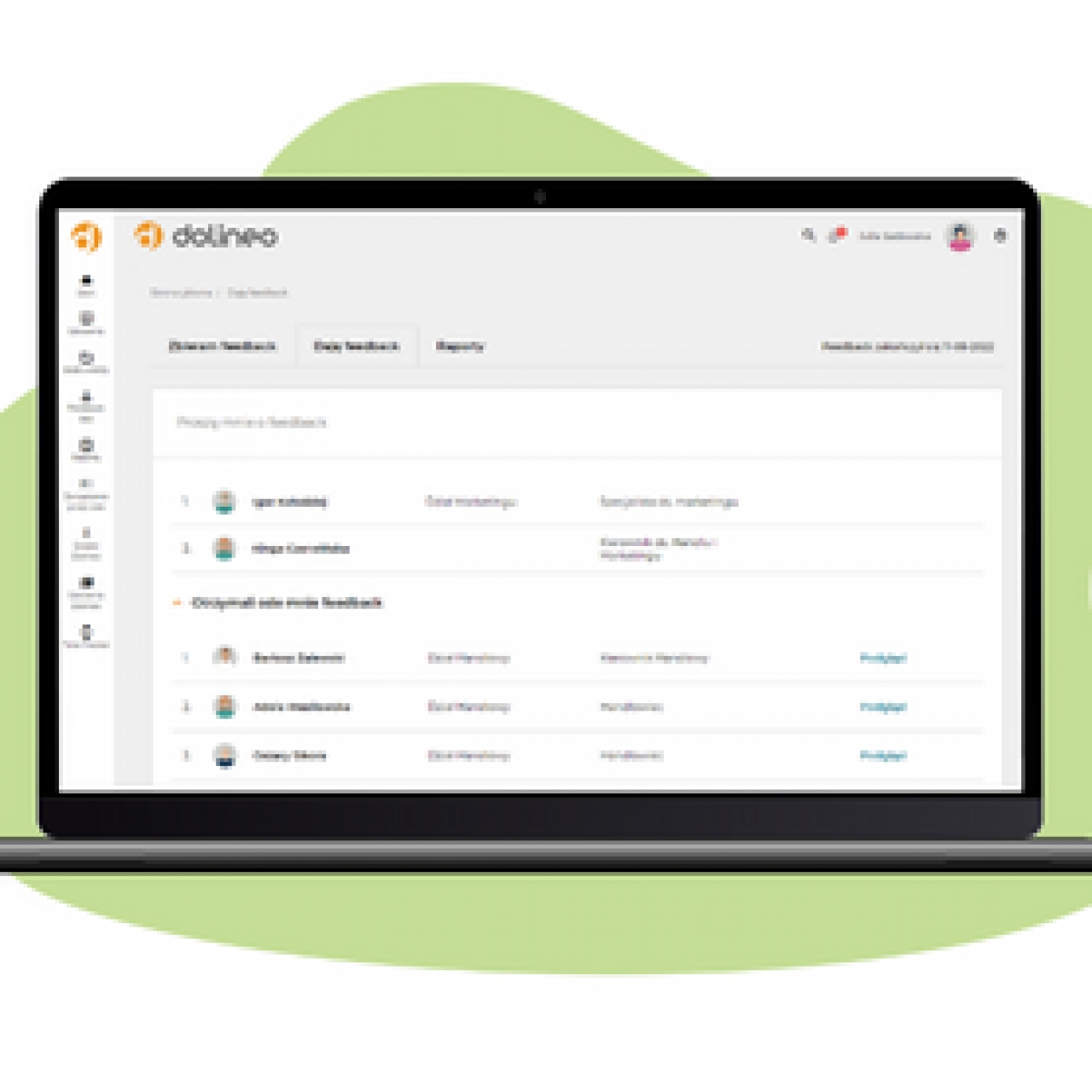 Dolineo wspiera firmy w przeprowadzeniu oceny okresowej pracownika metodą 180/270/360 stopni. Oceny można przeprowadzać w dowolnych cyklach (kwartalny, półroczny, roczny) i kilku językach (polski, angielski, czeski). Dolineo oferuje dwie możliwości konfiguracji. W pierwszej to manager decyduje, kto będzie oceniał danego pracownika. Druga opcja pozwala podwładnemu na samodzielne wskazanie osób, które go ocenią. System Dolineo jest intuicyjny i pozwala na tworzenie nieograniczonej liczby kart oceny pracownika. W kwestionariuszach można przygotowywać zróżnicowane pytania: otwarte, na skali od 0 do 10, ze skalą NPS lub inną dowolną.