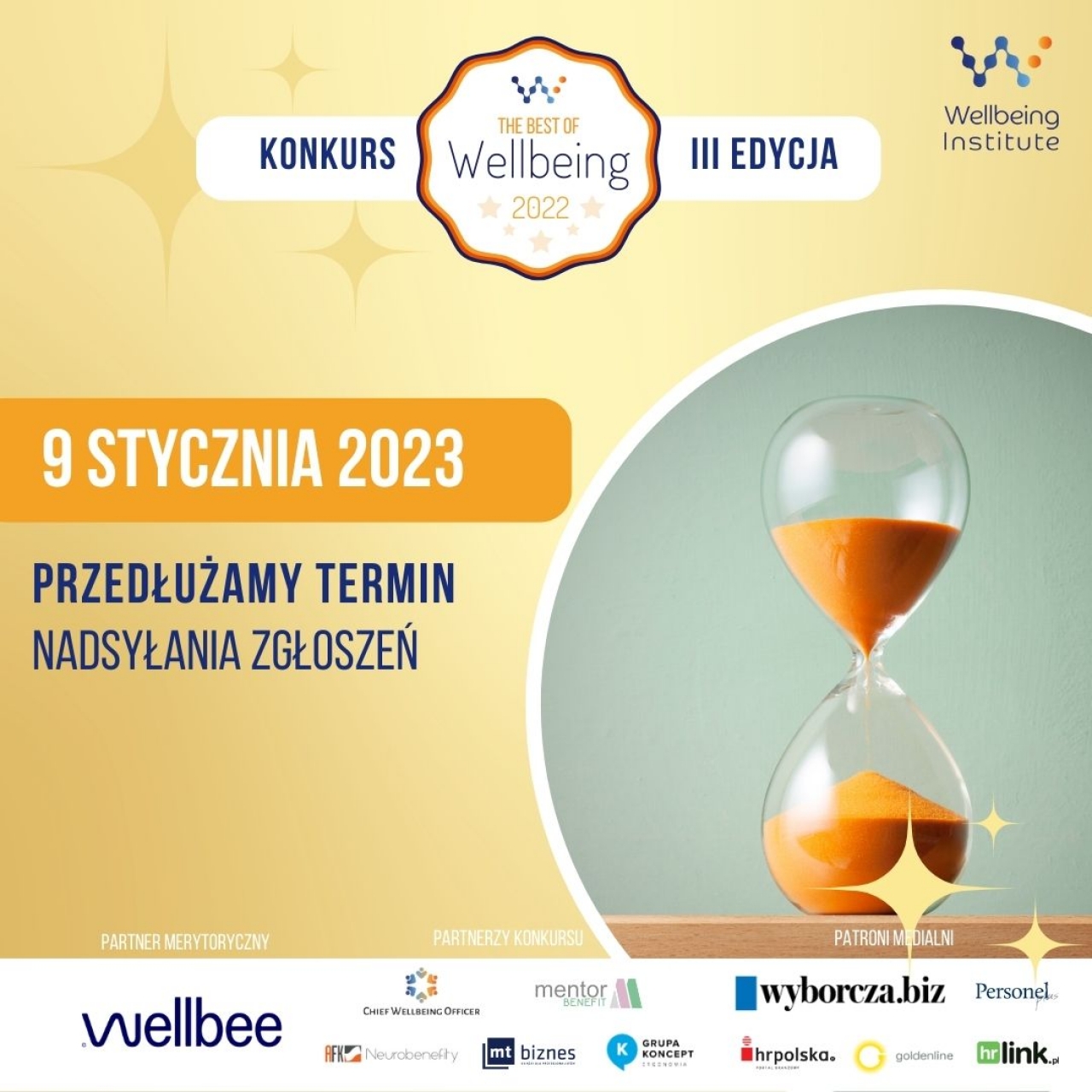 „The Best of Wellbeing 2022” do 9 stycznia 2023 r. Zmiana ta pomoże jeszcze większej liczbie firm wziąć udział w konkursie i podzielić się ze światem dobrymi praktykami z obszaru wellbeingu.